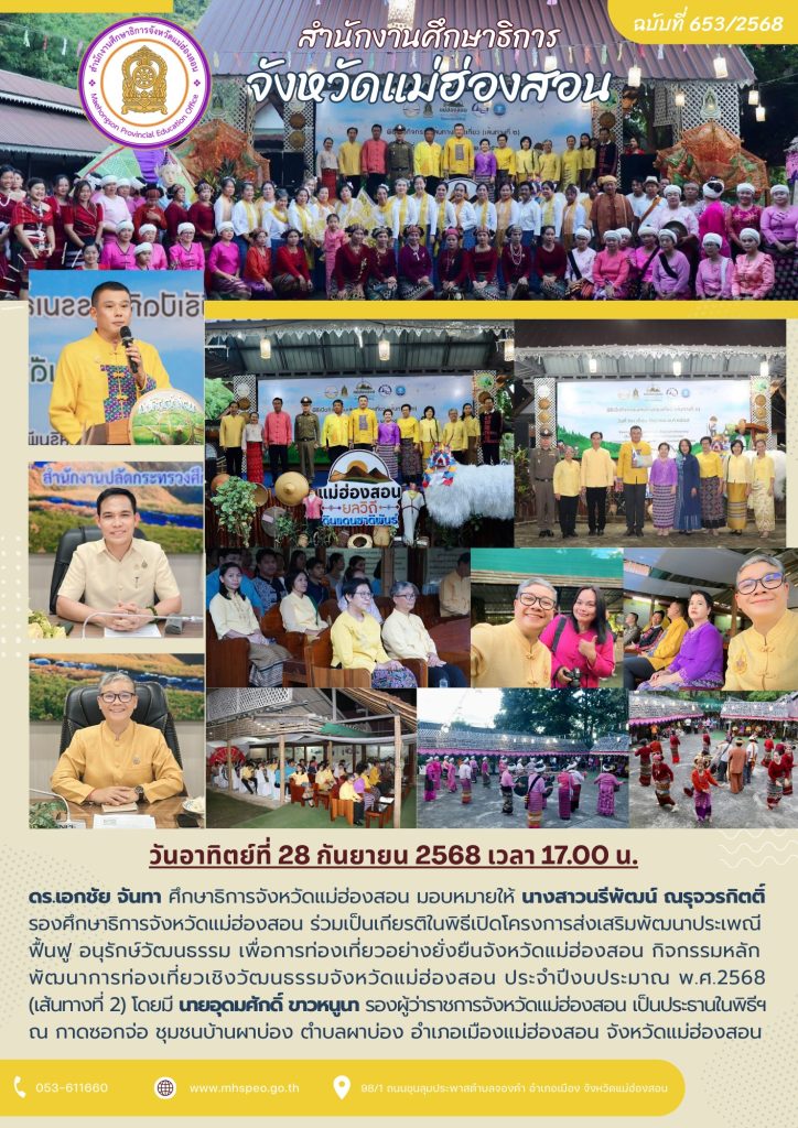 วันอาทิตย์ที่ 28 กันยายน 2568 เวลา 17.00 น. ดร.เอกชัย จันทา ศึกษาธิการจังหวัดแม่ฮ่องสอน มอบหมายให้