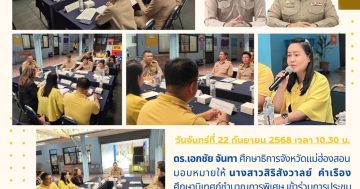 วันจันทร์ที่ 22 กันยายน 2568 เวลา 10.30 น. ดร.เอกชัย จั […]